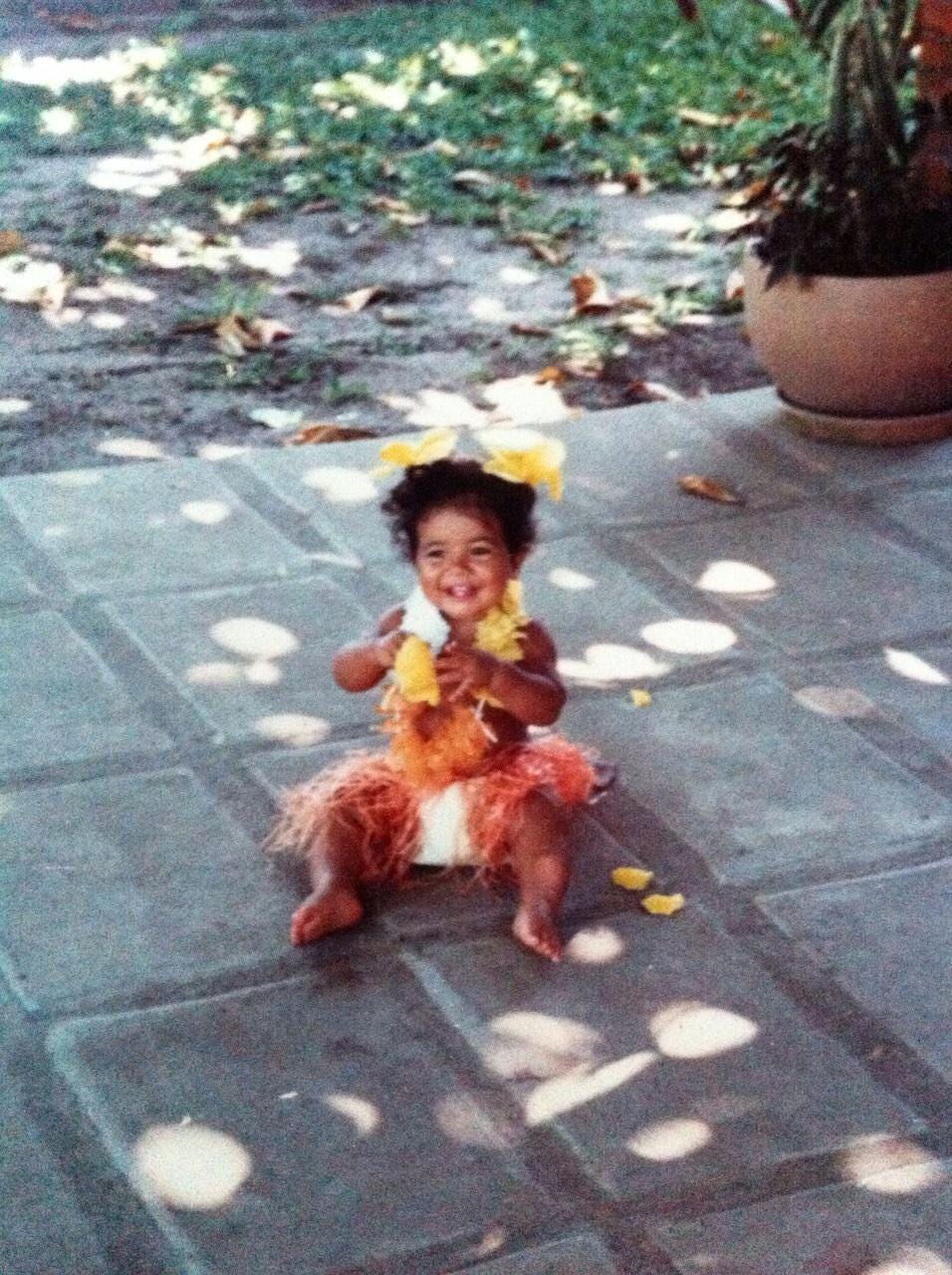 estou sentada no chão. não estou num berço. não estou em um marsúpio ou em um colchão. em um tapete. estou sentada no chão. de fralda. fixada na terra. como uma árvore. tenho a cor de um tronco. marrom. a minha pele brilha. tenho flores na cabeça. flores amarelas na cabeça. como as flores que a minha mãe me trouxe na maternidade no dia em que matilda nasceu. tenho flores de plástico penduradas no pescoço. e uma saia de fitas da cor laranja. pareço uma havaiana. estou fantasiada de havaiana. sou brasileira. dá pra ver, sou brasileira. até hoje sabem que sou brasileira, de longe. estou pronta para o carnaval de 1988. o meu tronco está firme. como o tronco de uma árvore. as minhas flores estão desabrochadas. como as flores de uma árvore. estou sorrindo. é carnaval. estou sorrindo. estou feliz. as minhas mãos parecem uma continuação de um bater de palmas. estou batendo palmas. estou dançando. fixada no chão. é verão. faço música com as mãos. estamos na casa de praia em rio das ostras. é verão. atrás de mim há um gramado e um vaso de plantas. estou no mesmo nível delas. da grama, das folhas, do vaso de plantas. vejo os meus pais acima de mim. como anjos. vejo o que eles não veem. antecipo-os o que é estável, terreno, eu sou a sua estabilidade. eu sou o que os mantém. o que lhe dá forças. eu sou a raiz dos dois. a raiz de ambos. eu sou a ramificação de seus genes. levo água. levo nutrientes. eu sou o seu alimento. eu sou a continuação de suas histórias. sou uma árvore. uma pequena árvore de verão. sou o futuro. sou o passado. pronta para o carnaval. sou morena, sou feliz, sou alegre, gosto de dançar, sou solar, gosto do verão, gosto de ter os pés no chão, a pele à mostra, flores na cabeça, gosto de usar saias, gosto de música, do ritmo. sou latina. sou indígena. tenho os bracinhos fortes. dá pra ver. os meus ombros sobressalentes. até hoje. tenho os braços fortes. carrego grandes pesos. mas estou fixada. estou no chão. sentada. rasteira. estável. fixa. raiz. este é um retrato das minhas raízes. pareço a moana.